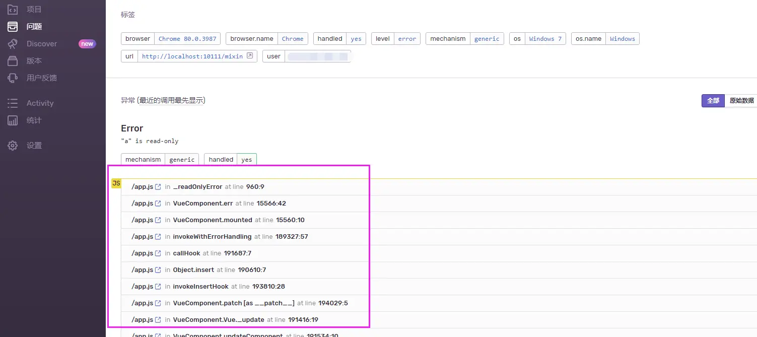 使用背景:用户遇到报错提示,测试一直无法复现,前端定位不到问题,无法解决,这时前端异常监控工具就发挥作用了。