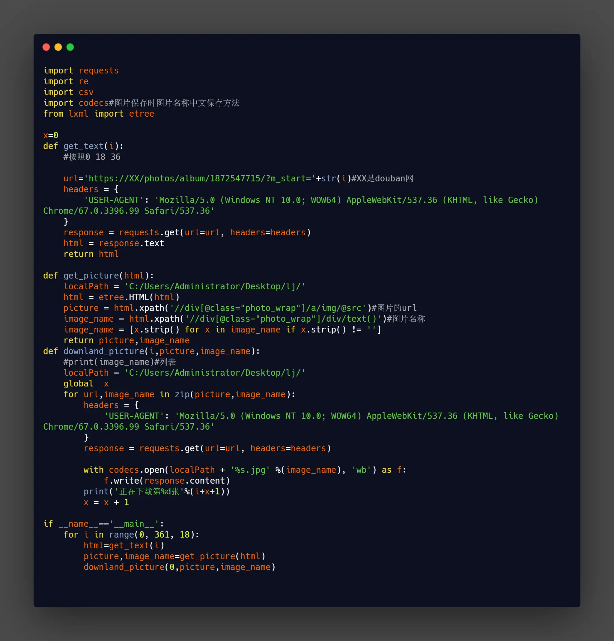 开始下载。代码优化的地方很多,比如多线程,代理池,更规范的封装,小伙伴们可以去尝试。主要,代码中的url需要稍微改改哟。