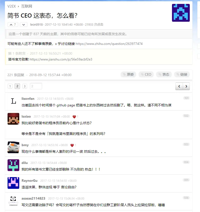 然后简书CEO的表态也是恶心人,说简书上言论自由。。。