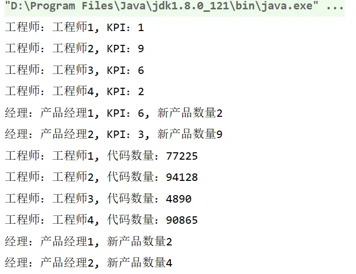 System.out.println("工程师:" + engineer.name + ", KPI:" + engineer.kpi);