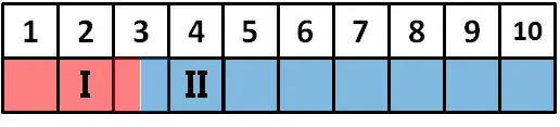 博弈如下:有两个候选人,每个候选人的策略集合相同,即有1-10个政治立场,分别是左派(1)到右派(10)。假设每个立场的选票数量相同,均为。当候选人选择一个立场的时候,该立场的选民会投给该候选人,其他立场的选民会投给离自己立场最近(本立场可以看做0)的候选人。当距离一样时,票数评分。示意如下: