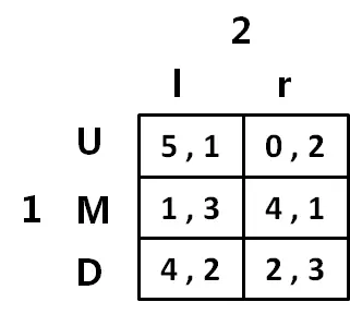 比如参与者2选择了L,那么U就是参与者1的最佳应对(BR)。