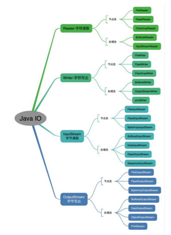 (3)按照流的角色划分为节点流和处理流。