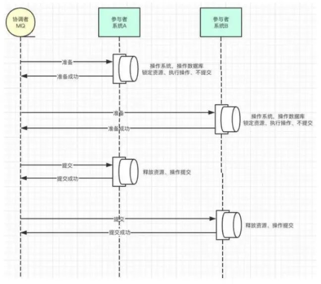 2pc(两段式提交)可以说是分布式事务的最开始的样子了,像极了媒婆,就是通过消息中间件或者全部事务管理来协调多个系统,在两个系统操作事务的时候都锁定资源但是不提交事务,等两者都准备好了,告诉消息中间件或者全部事务管理者,然后再分别提交事务。不管最后结果如何,第二阶段都会结束当前事务