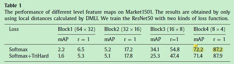 文章的实验相比之前也有些改变,文章在不同网络block输出而使用DMLI的表现,我注意到block4加了trihard提升的好小。也可以看出网络特征提取对ReID的影响如此之重要。