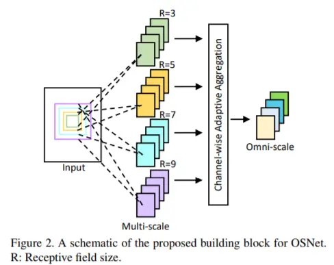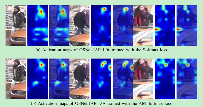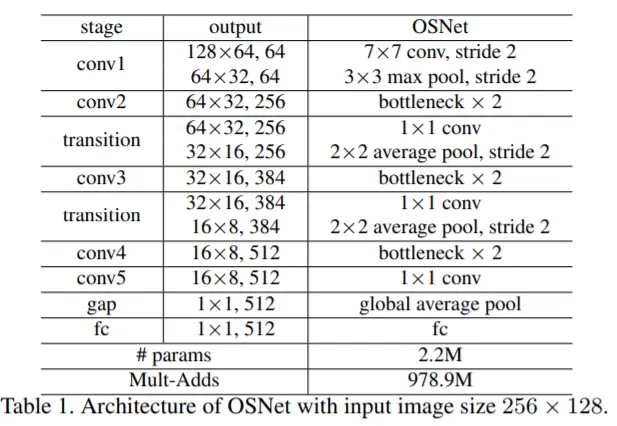 除了AM-softmax的改进,作者还将平常使用的CNN(ResNet50)替换成了OSNet[3],和ResNet类似,OSNet也有很多不同尺度的残差块,但同时OSNet使用的OSBlock更加轻量,且有理论上更加大的感受野,在浅层就能提供聚合和处理全局背景信息。