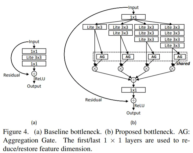 OSNet改造过的bottleneck residual block如下右(来自[3]):