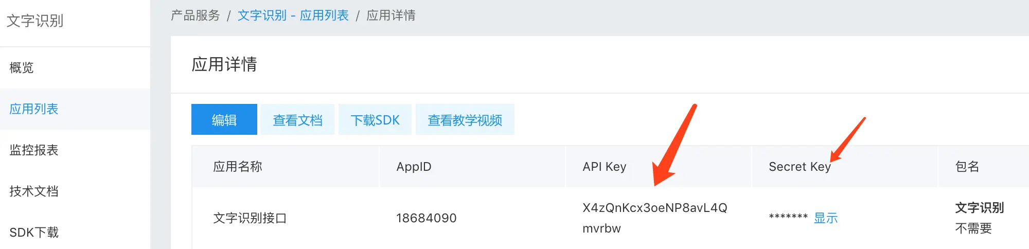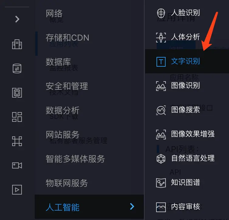 随后在人工智能-》文字识别 模块里建立一个应用