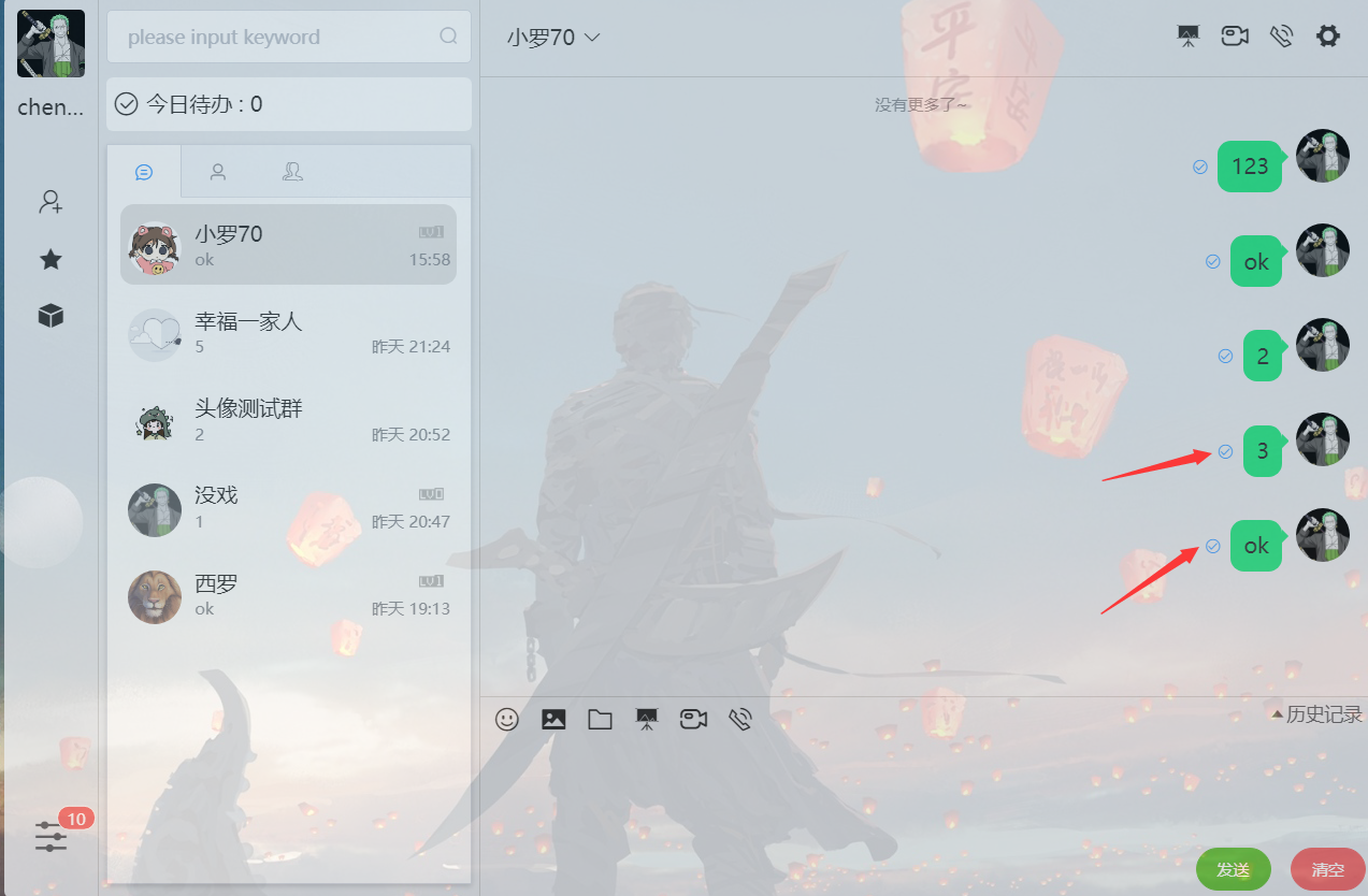 - 群聊,群聊目前只支持文字、图片、表情的形式,目前群聊消息也不支持已读提醒(后续完善)。