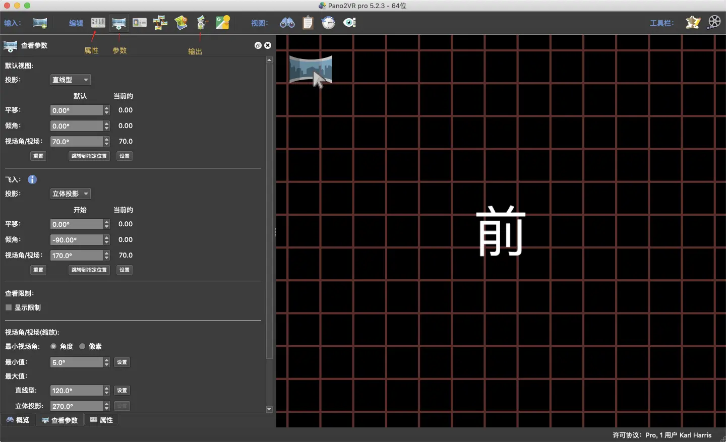 点击属性可以上传设计师给你的全景图片,理论上应该是一张长图,输入图像的类型设为自动,软件即可自动识别为十字形。