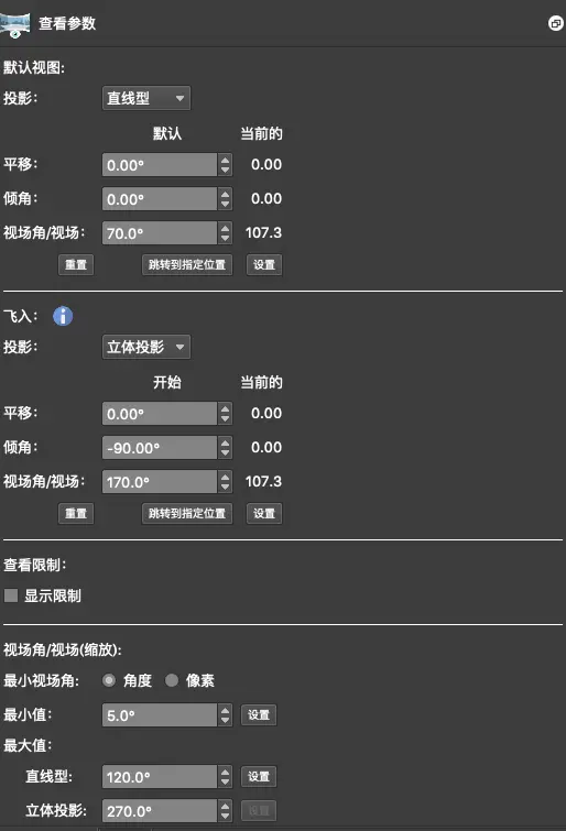 视场角/视场(缩放):限制最大/最小 放大/缩放角度,各取所需即可