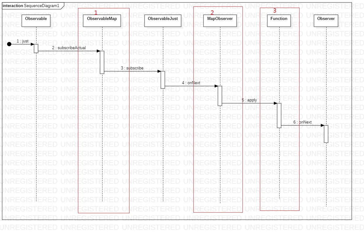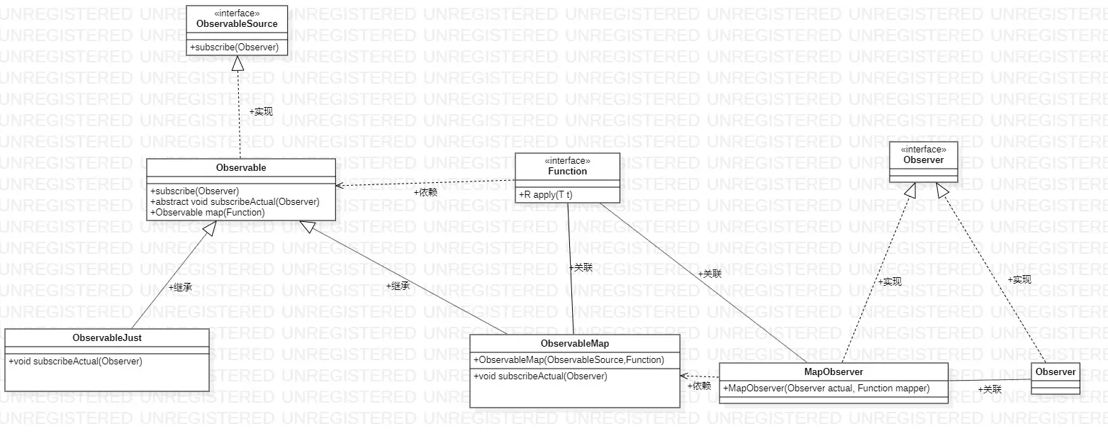 2,在map操作符传入变换接口实例后,创建了ObservableMap,把上层的observable和变换实例Function进行保存,并返回。