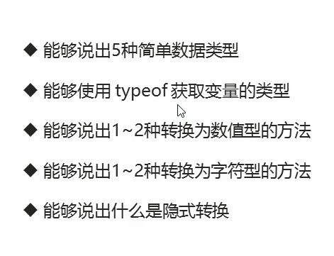 数据类型 姜雅君 2020-03-30 105 阅读1分钟 数据类型掌握要求; 一.1.js的变量数据类型是只有程序在运行过程中,根据等号右边的值来确定的。2.js是动态语言,变量的数据类型是可以变化的。二.数据类型的分类