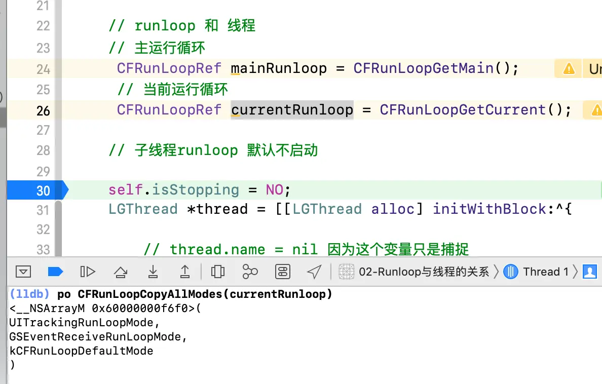 CFRunLoopRef lp = CFRunLoopGetCurrent();