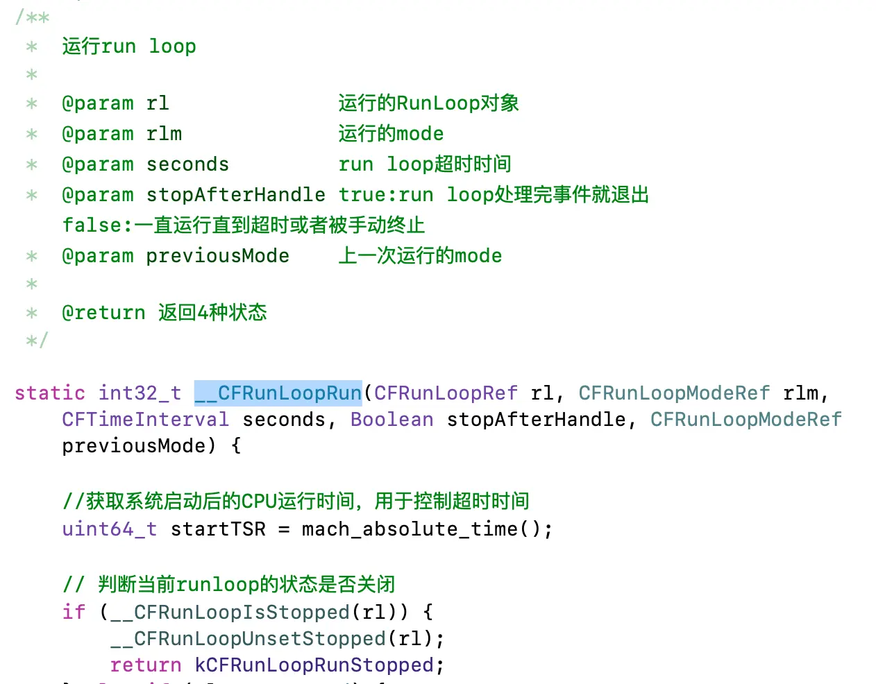 return did ? kCFRunLoopRunHandledSource : kCFRunLoopRunFinished;