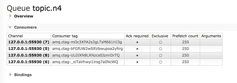 @RabbitListener(bindings = @QueueBinding(value = @Queue(value = "topic.n4", durable = "false", autoDelete = "true"),
