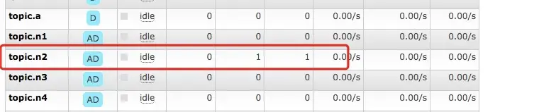 然后再关注一下,没有 ack 的那个队列,一直有一个 unack 的消息
