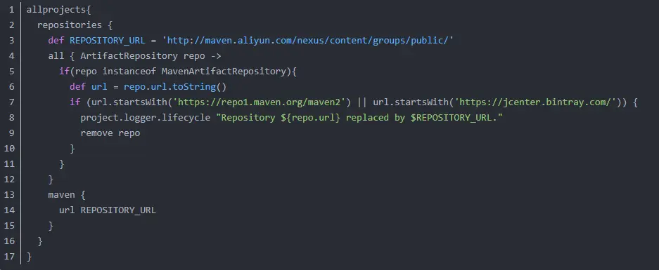 【Gradle】IDEA Gradle使用Maven仓库的方法 程序猿空间 2020-03-30 405 阅读1分钟 1.在自己的电脑上找到如:D:\Lucifer.gradle的gradle缓存文件夹,新建文件init.gradle 2.复制粘贴在init.gradle中,保存即可。