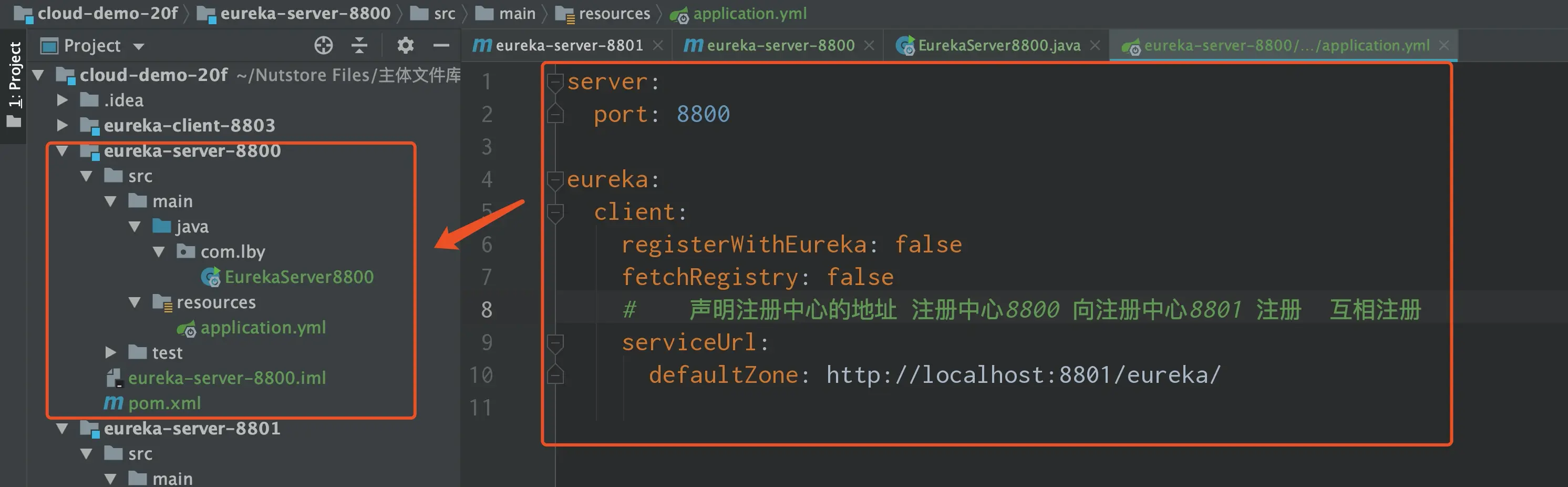 3.关闭一个注册中心8800,注册中心8801不受任何影响,整个微服务的集群也不受任何影响,客户端可以正常注册