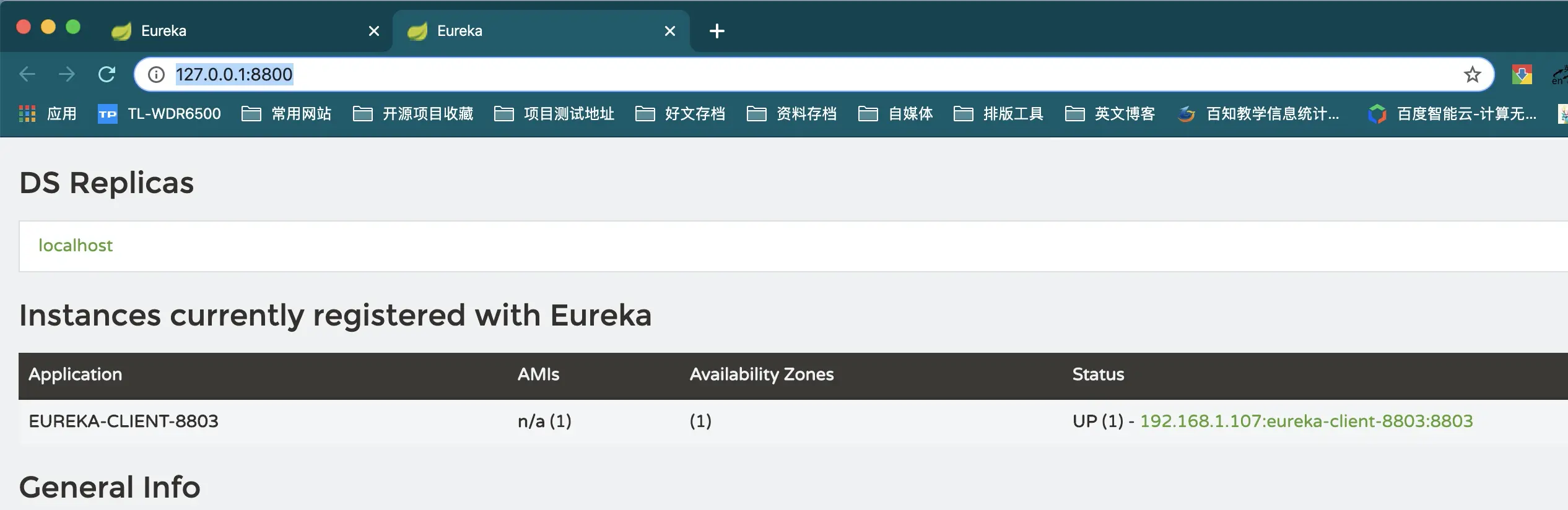 查看注册中心 8800 的管理页面,可以看到客户端可以正常注册