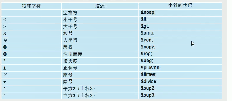 html 标签不方便使用的地方可以使用特殊字符 它们属于符号。
