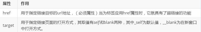 <a herf="目标的url地址" target="页面的打开方式">文本</a>