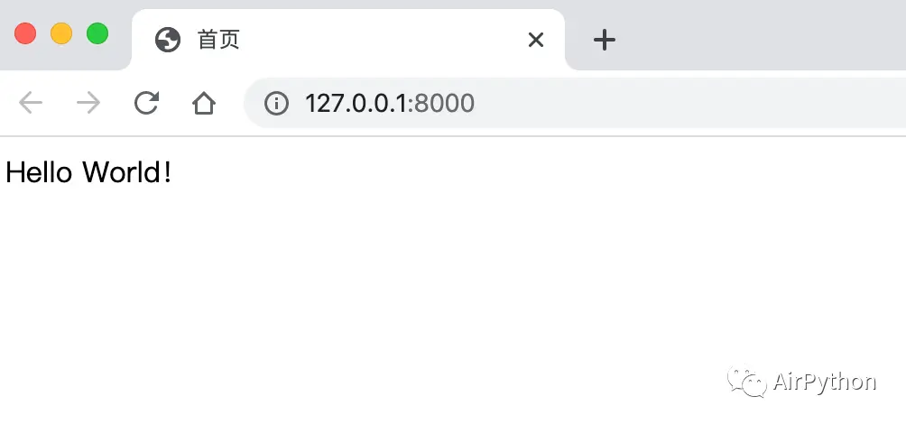 from django.contrib import adminfrom django.urls import path# 导入App的视图from secondapp.views import index# 路由配置urlpatterns = [ path('admin/', admin.site.urls), path('', index)]通过上面 3 步操作,启动项目,即可以利用浏览器访问 Hello World 页面了