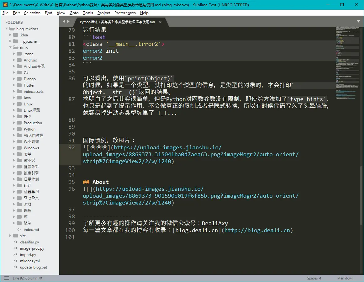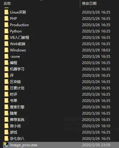 下载下来放在和你的文章同个文件夹,双击打开即可自动处理文章,举个例子,图片中每个文件夹就是一个文章分类,每个文件夹下面有若干个markdown文件,把程序放在这里运行即可,(有不懂的可以后台留言)