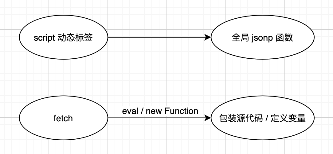 总的来说,JS 模块的动态加载可以分为两个阶段,加载阶段和执行阶段。按照加载方式分,有 script 标签加载和 fetch 请求两种方式。在执行阶段, script 标签加载一般配合全局的 jsonp 函数来做解析,函数具体做什么就看约定方式了,比如 requirejs 中的 define 方法和 webpack 动态加载时的 webpackJsonpCallback。而 fetch 请求方式拿到模块内容之后,则需要用 eval 或者 new Function 方法进行包装控制解析。