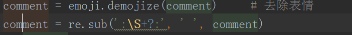 4、为了保存评论内容,我们要将评论中的表情去掉,使用正则表达式进行处理,如下图所示。