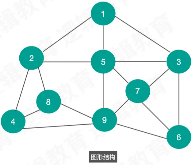 图形结构 数据间的关系是多对多的。常见的图形结构例如:互联网中各个计算机之间的连接关系就是图形结构。