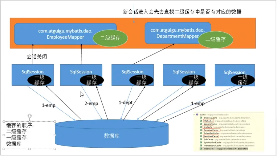 当开启缓存后,数据的查询执行的流程就是 二级缓存 -> 一级缓存 -> 数据库。