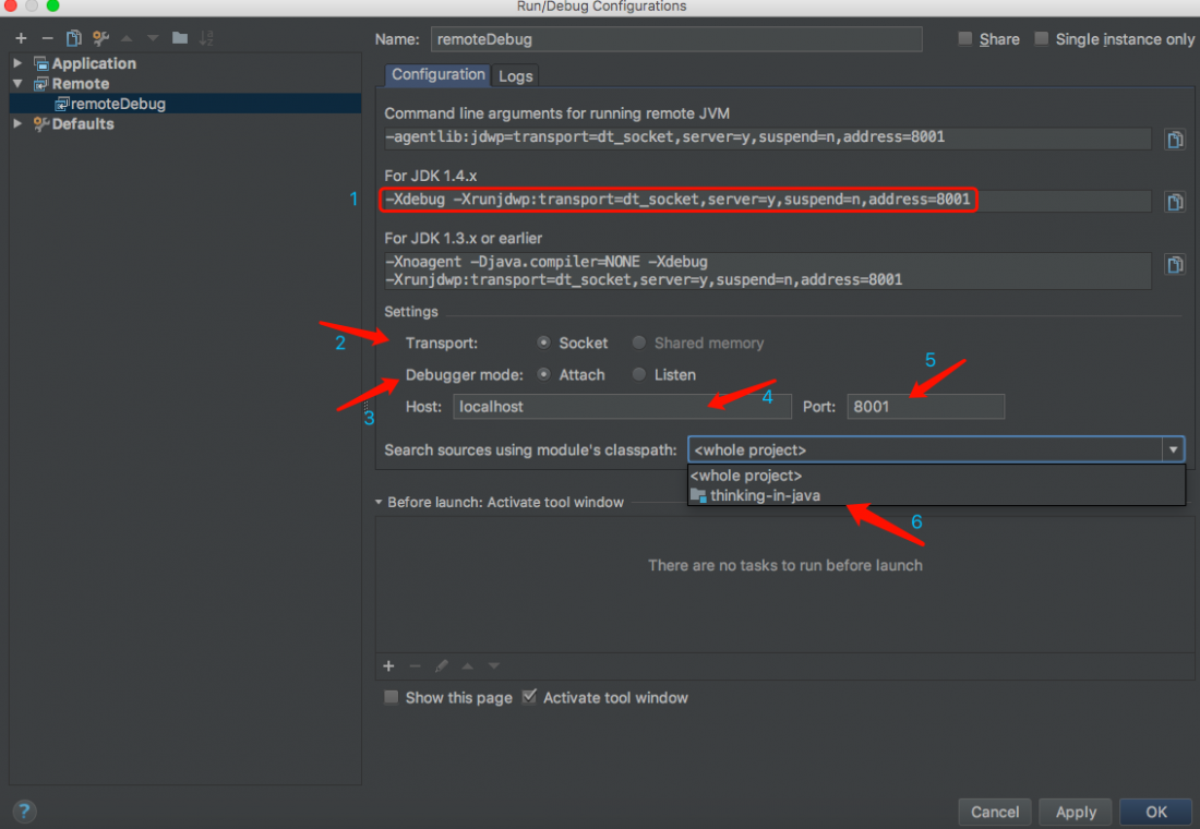 标注 1:运行远程 JVM 的命令行参数;