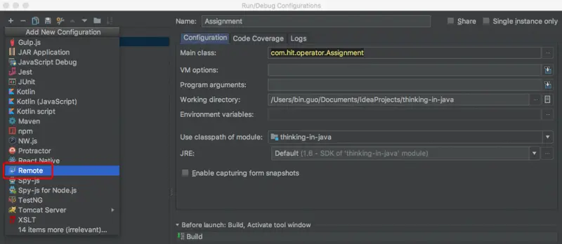 如上图所示,我们进入了Run/Debug Configurations界面,然后点击左上角的+,选择Remote: