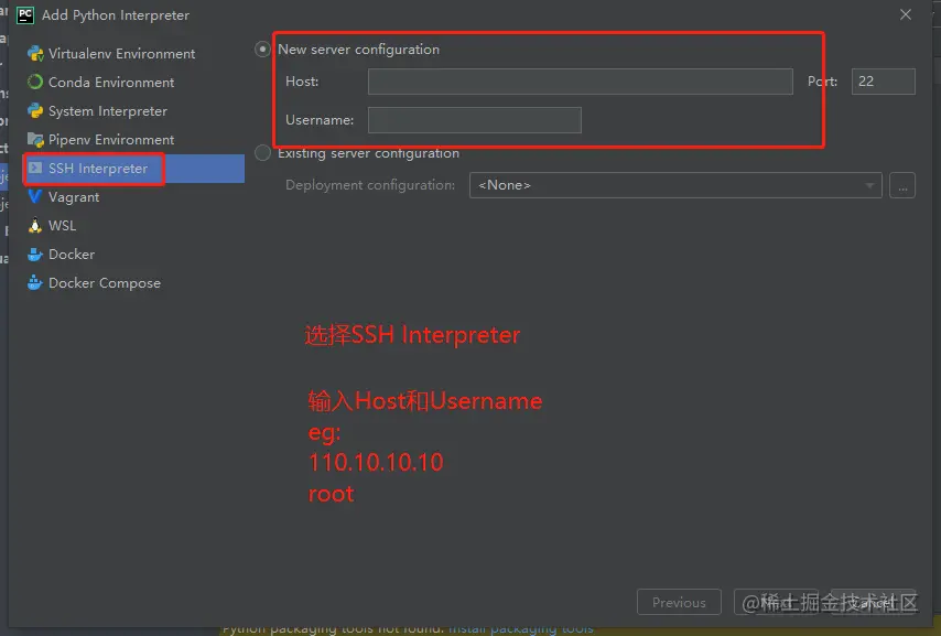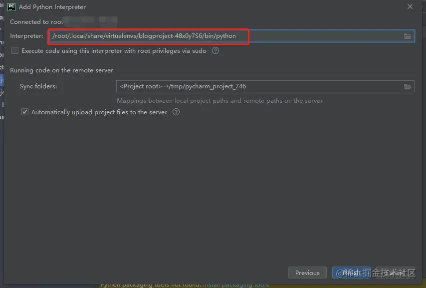 配置环境,记得把上面从linux中获取到的路径拼接上/bin/python