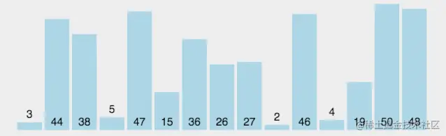 - 持续每次对越来越少的元素重复上面的步骤,直到没有任何一对数字需要比较。