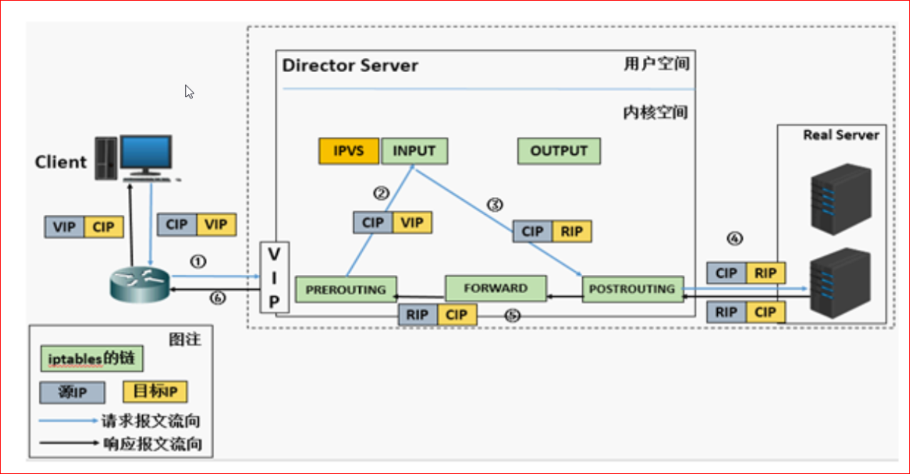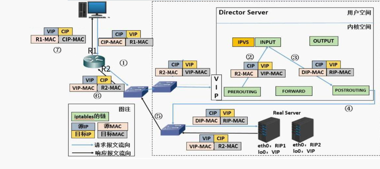 请求报文必须要先给LVS,所以路由器收到请求后,第一步就要给LVS