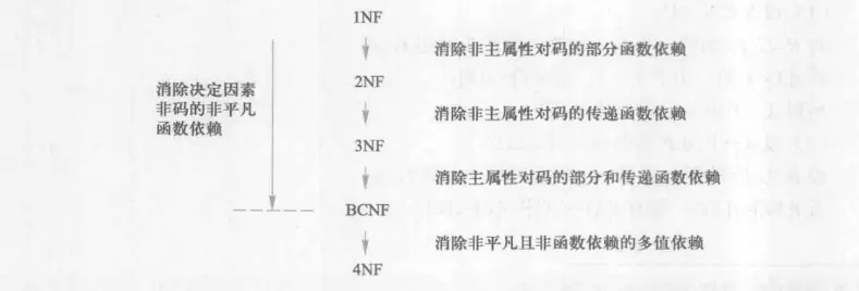 关系数据库中的关系是要满足一定的要求的,满足不同程度的要求称为不同的范式。一个低一级的范式经过模式分解可以转换为高一级的范式集合。这种叫做规范化。