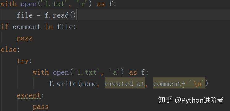 8、对获取到的数据,做去重处理,如下图所示。如果评论已经在里边的话,就直接pass掉,如果没有的话,继续追加即可。