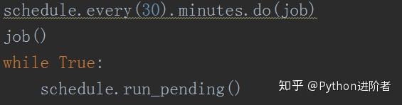 7、这里把函数命名为job。为了能够一直取出最新的数据,我们可以用schedule给程序加个定时功能,每隔10分钟或者半个小时抓1次,如下图所示。