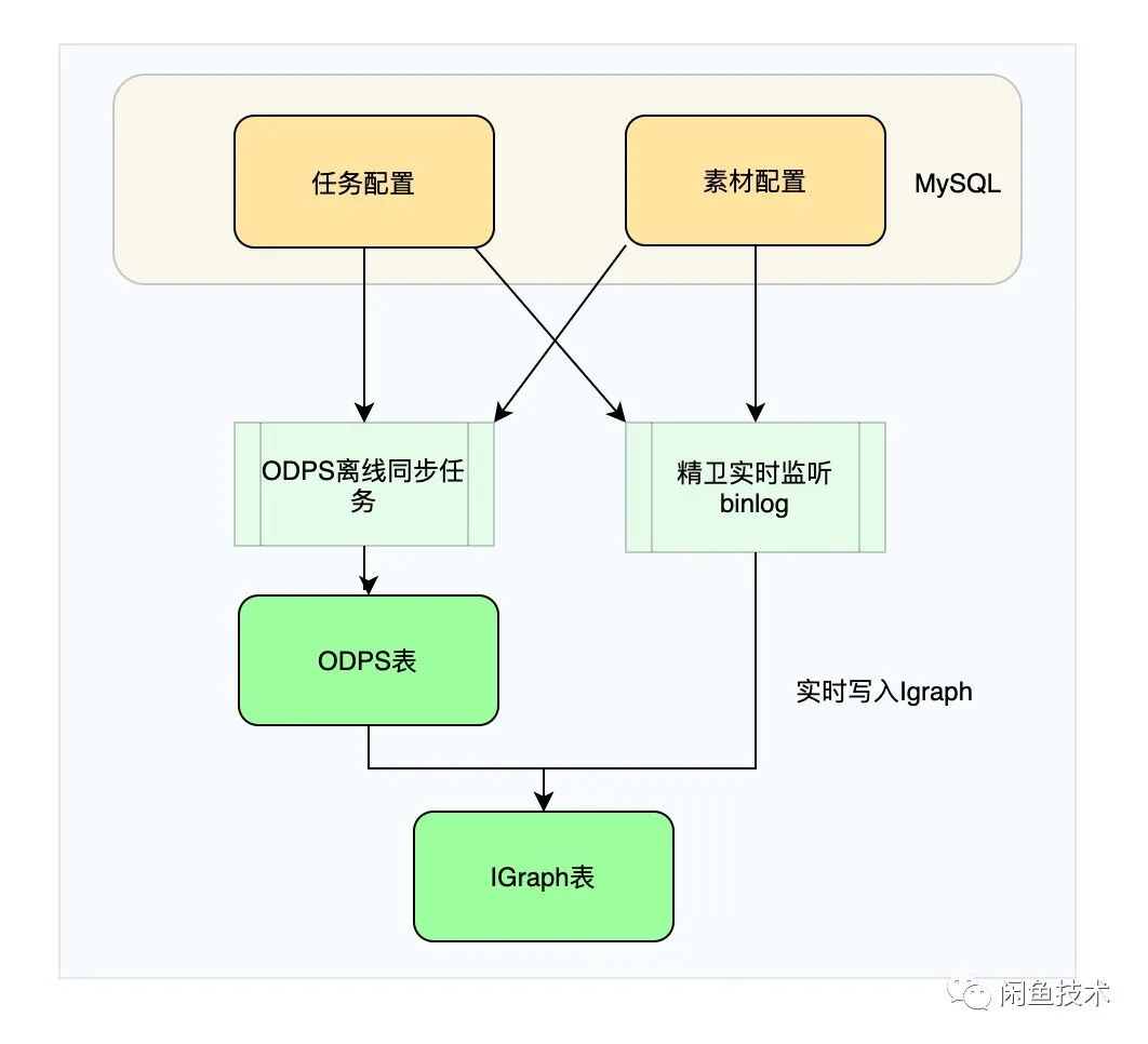 在数据流转的设计架构中,配置中心的任务素材内容我们存储在 mysql 和 ODPS(阿里海量数据离线处理平台【2】)中,通过离线同步和实时同步两种方式输入到匹配中心(算法中心):任务素材的配置信息存储在 mysql 中,离线通过 ODPS 同步机制,实时通过监听 binlog 机制,同步发送 MQ 消息给匹配中心;