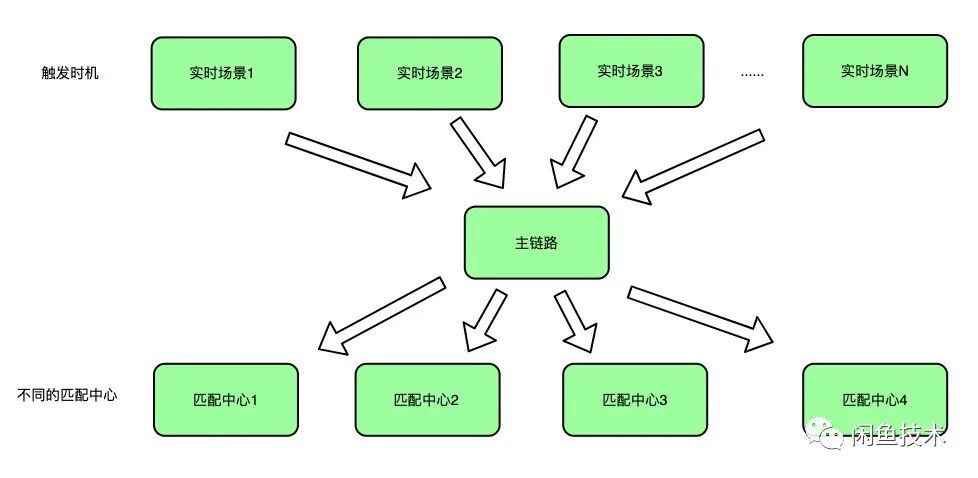 这里需要单独说明一下实时触发的场景,由于实时触发的场景多样,系统会根据用户行为推送给用户不同的消息内容。但系统又不能对用户造成骚扰,这就需要匹配中心需要区分这些场景,有针对性的选择最合适的内容,针对复杂的场景,需要进行场景隔离。这就需要不同的匹配中心,因此系统要对匹配中心灵活配置,这里我们通过传入匹配中心的 id 灵活选择对应的匹配中心,解耦了任务中心和匹配中心,对未来更多类型的场景,提供了可能。