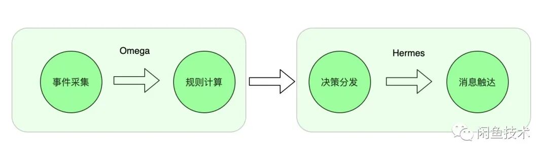 实时触发是通过端智能的用户行为采集,上报,根据用户目前所在的场景,挑选适合该场景的信息发送给用户。这其中,感知用户行为和决策下发是 Omega 系统实现的,Hermes 通过与 Omega 系统配合,获得触发时机以及对应场景,关于 Omega 系统的介绍,我们公众号之前的系列文章 《一个实时精准触达系统的自我修养》会给你详细的阐述。