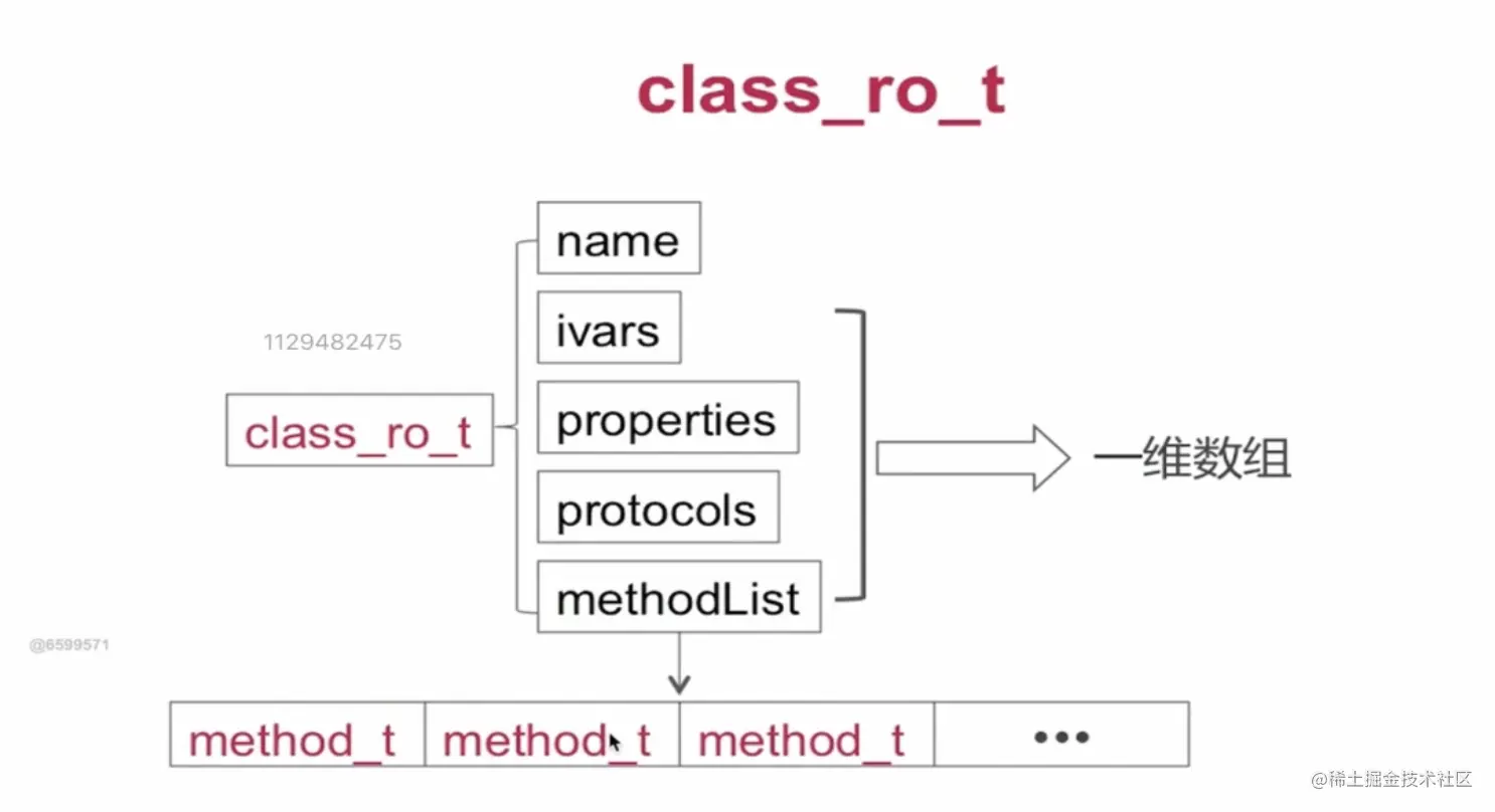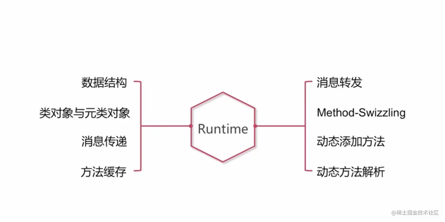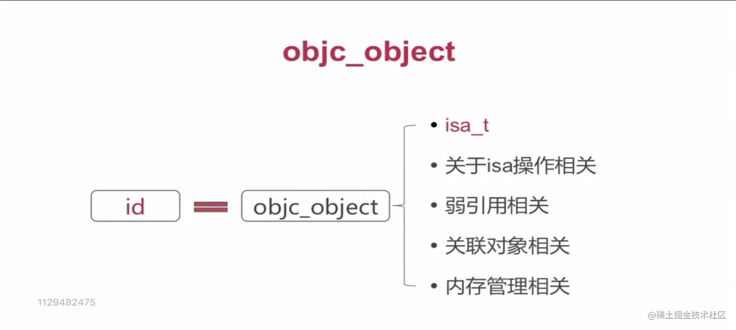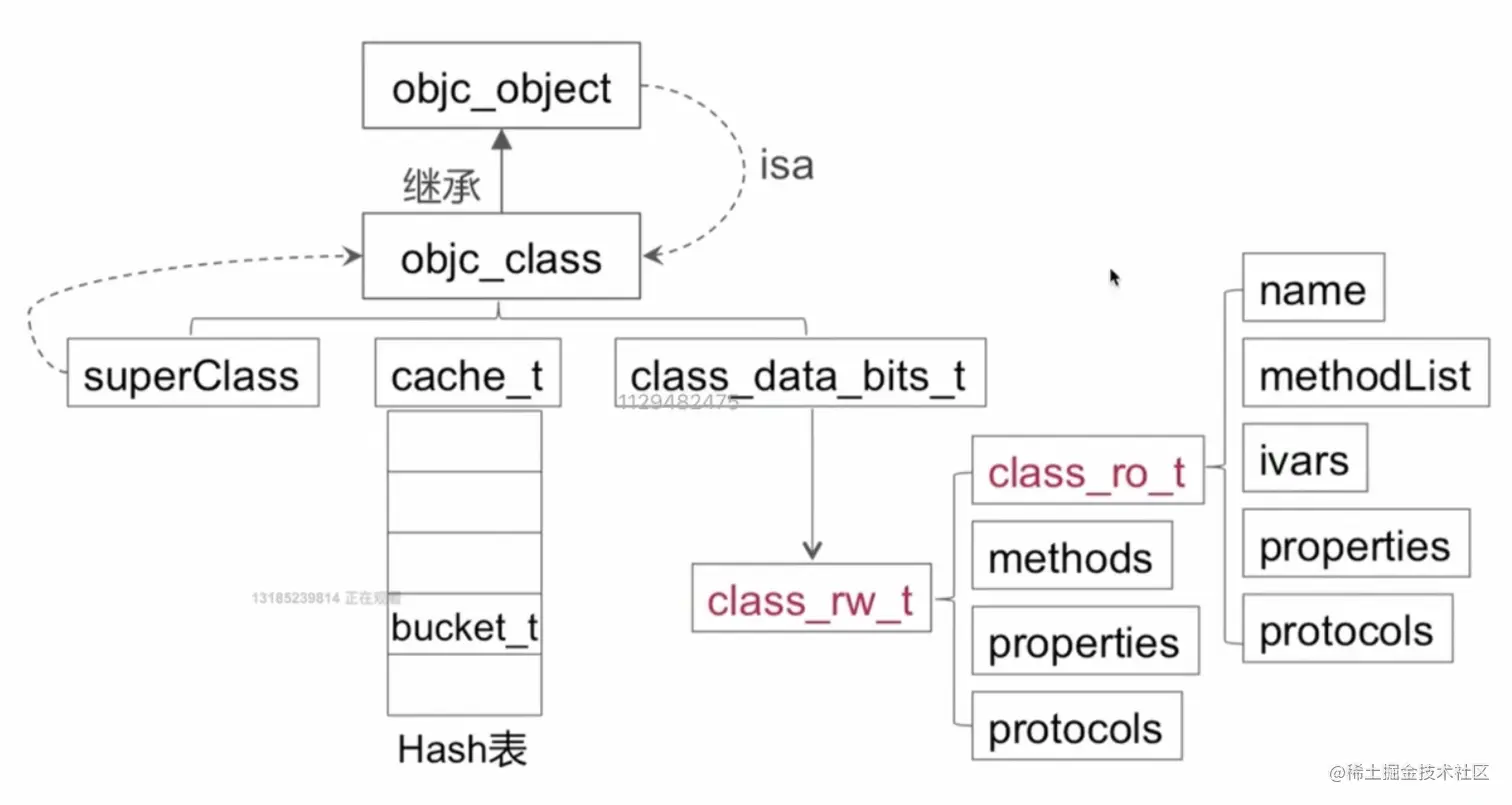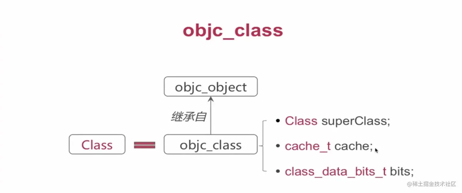 iOS 动态运行时Runtime 谢君101264 2020-03-31 153 阅读1分钟 是一门动态性比较强的编程语言, 动态性是由Runtime API来支撑 Runtime API 提供接口基本都是C语言,源码由C/C++汇编语言编写 arm64架构之前,isa就是普通指针,存储Class MetaClass对象地址 arm64之后,对isa之后优化,变成了一个共用体(union)结构,还是用位域来存储更多的信息其中33位存储地址 补充(枚举应用) 一、数据结构 objc_object objc_class isa指针 method_t