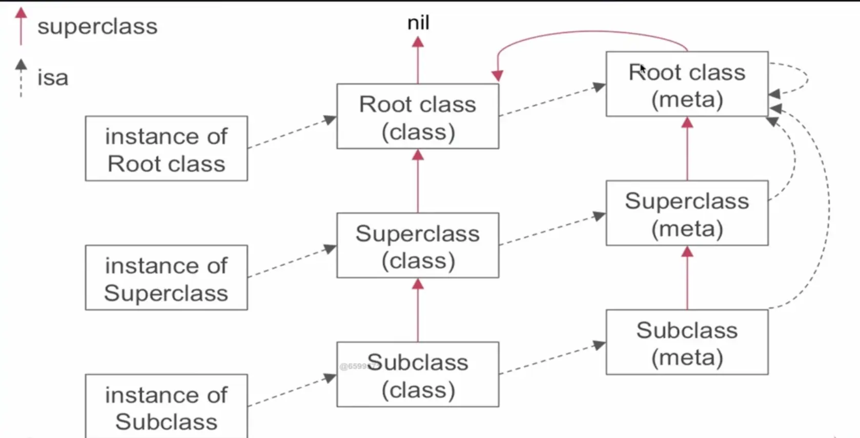 对象、类对象、元类对象 谢君101264 2020-03-31 208 阅读1分钟 类对象存储实例方法列表等信息 元类对象存储类方法列表等信息 meta-class的isa 指向根meta-class meta-class的superClass 为基类Class 如果没有父类,superClass指针为nil 消息传递 void objc_msgSend(self,SEL,参数) 缓存查找 当前类中的查找 父类逐级查找
