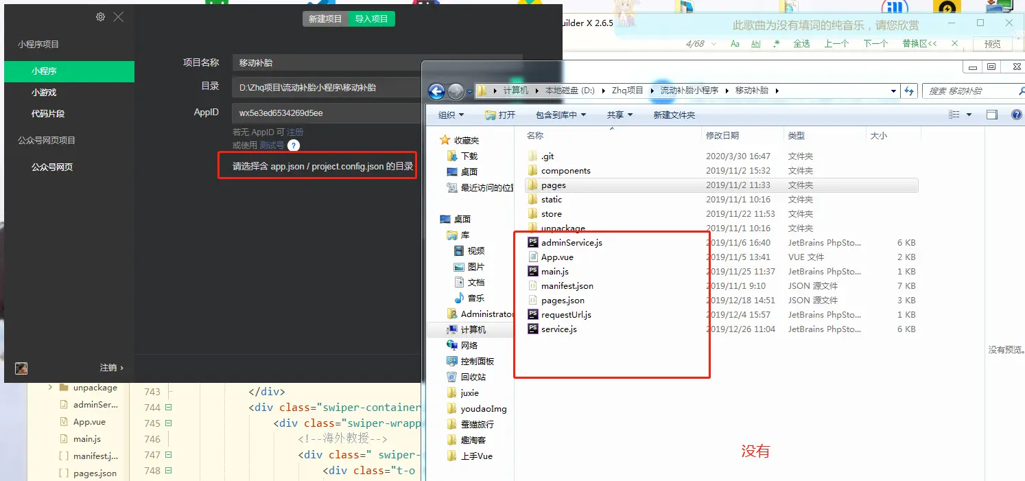 原因是因为使用微信开发者工具导入的时候发现没有app.json文件