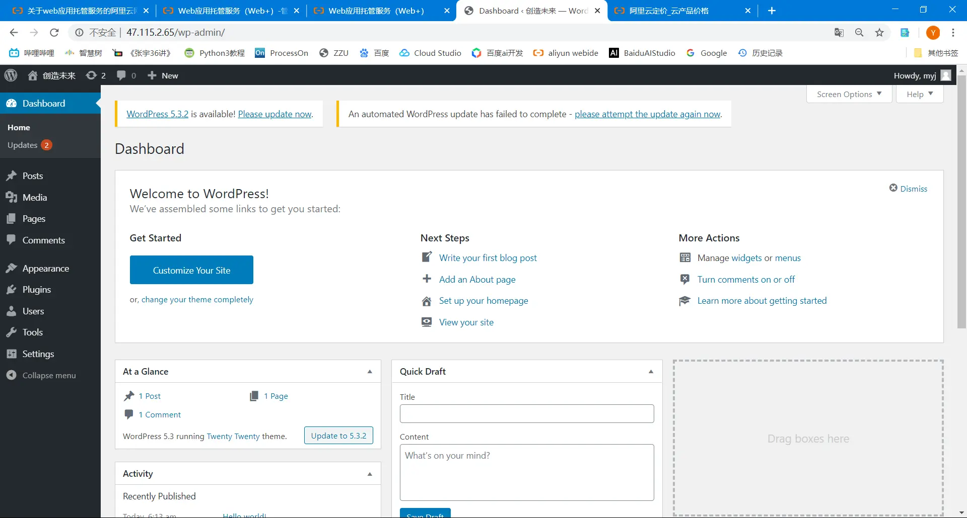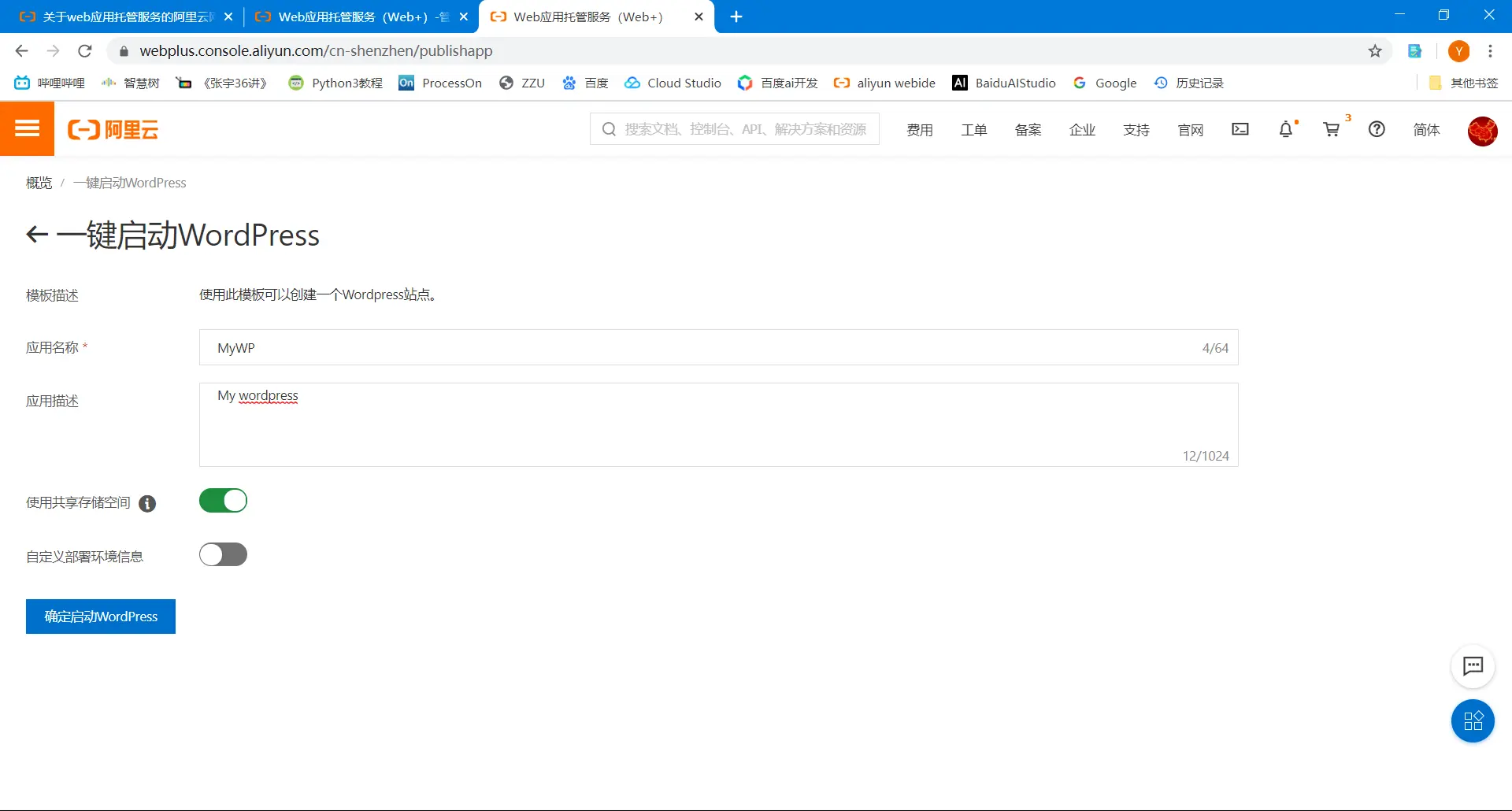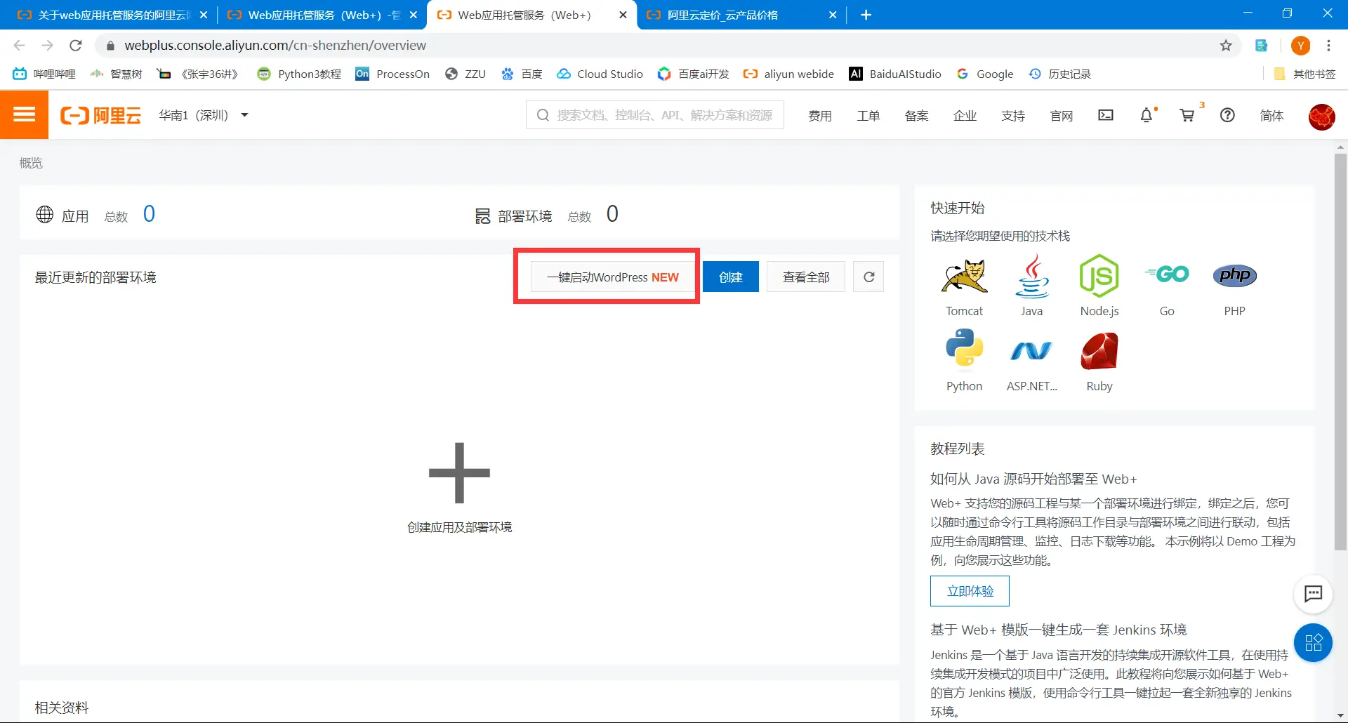 建个博客,不想费用太高,但是学生服务器也不能续租了,于是努力找便宜建站的方法,于是找到了一个方法,用“阿里云Web应用托管服务”建站。费用大概一个月5-10块左右。于是写一下建站过程。这里面有wordpress和wiki.js。