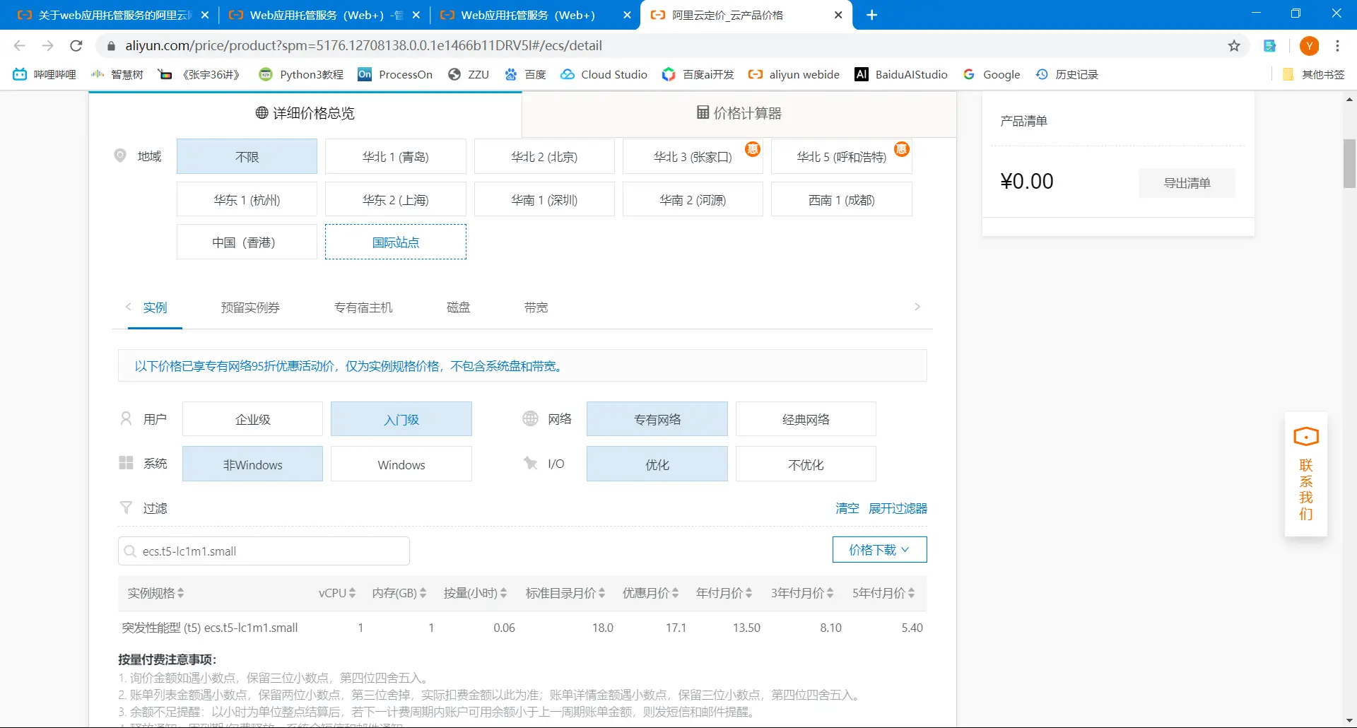 可以点击“ECS定价”查看费用,等建完后还可以更换更便宜的ECS。
