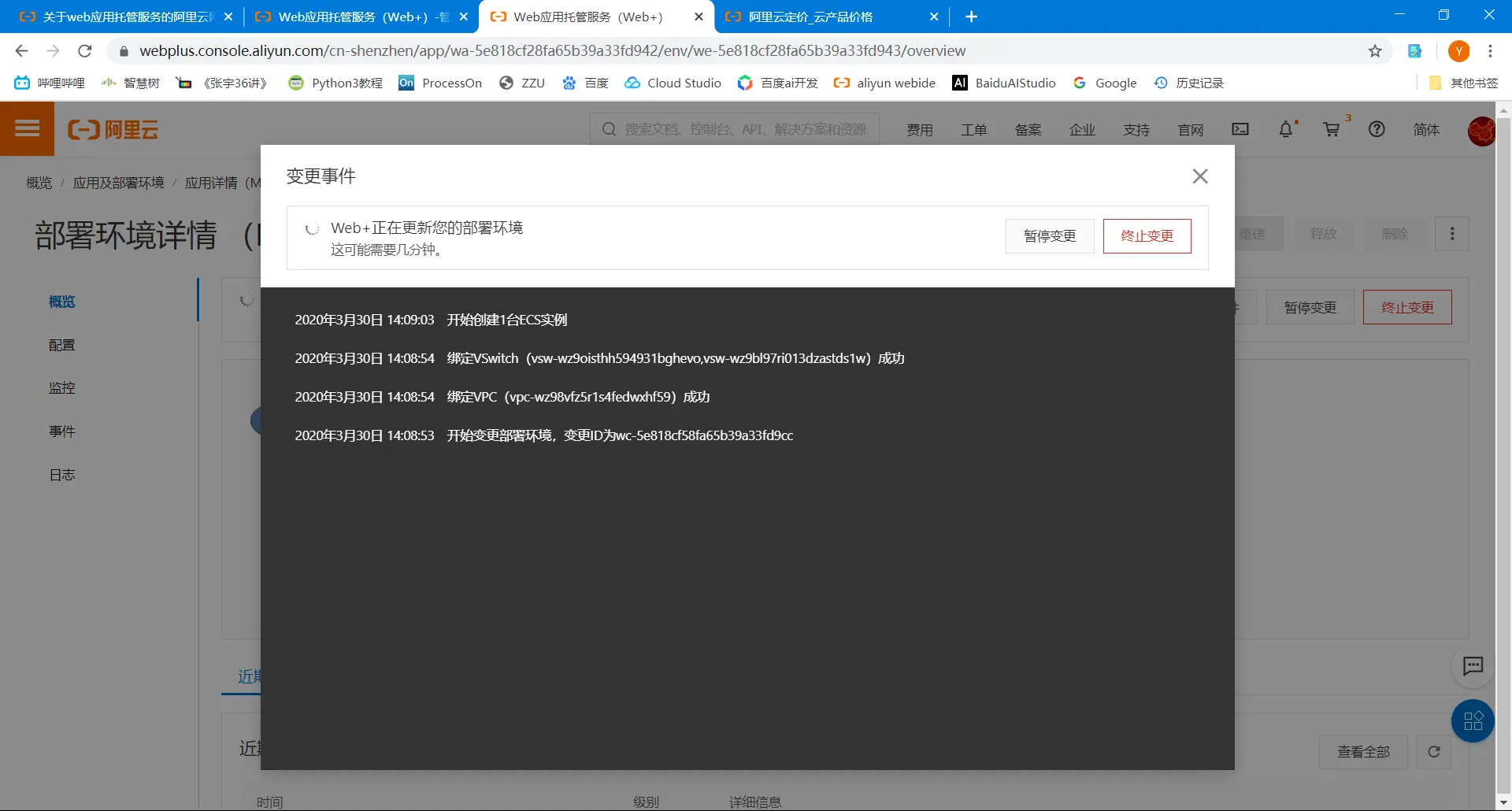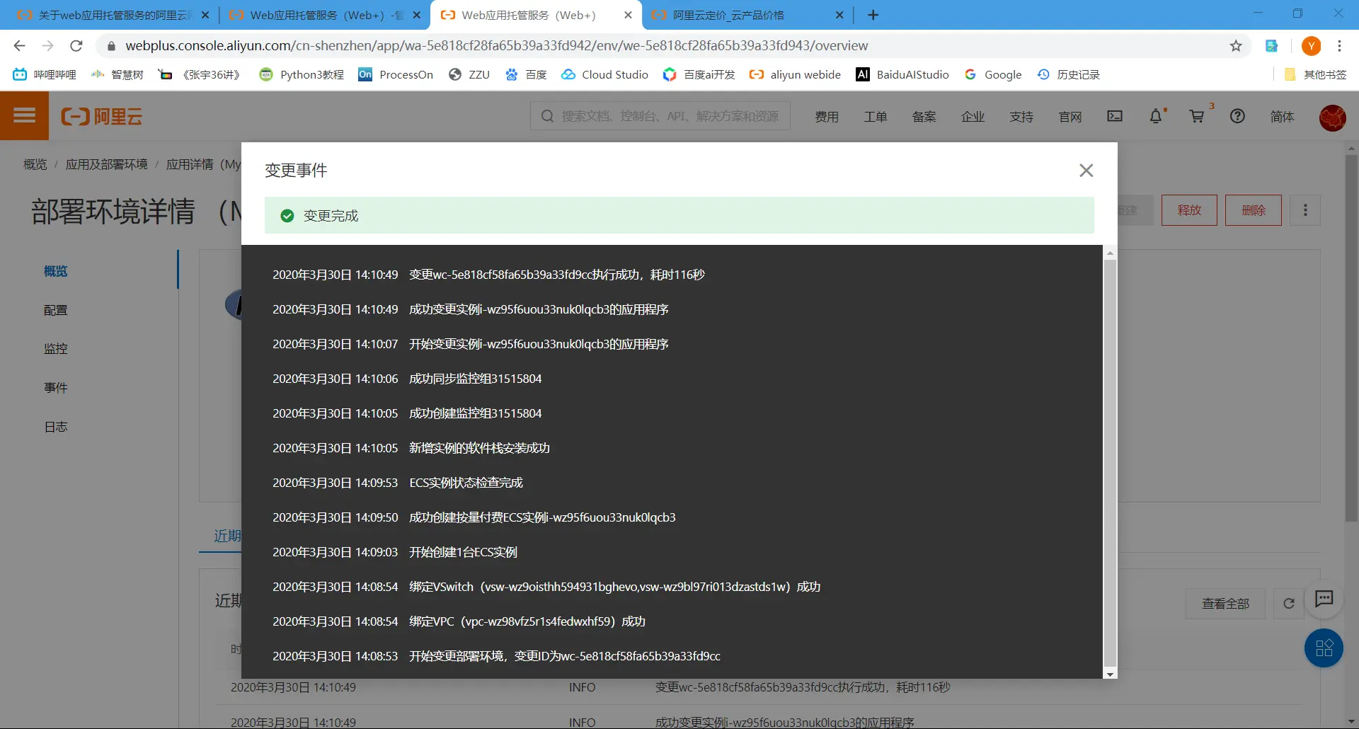 2.4点击“确定”后,点击查看部署环境日志