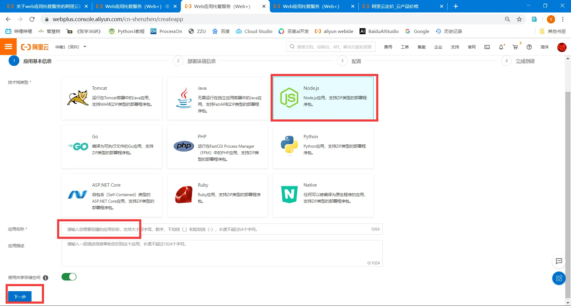 1进入Web应用托管服务